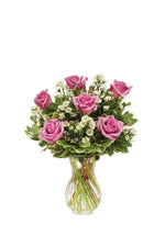 Este ramo impecable cuenta con una variedad de rosas y flores de Monte Casino magníficamente elaboradas en un jarrón transparente con forma de espiral... mientras que el aspecto y la sensación sublimes de la lavanda crean el ambiente perfecto para un Día de San Valentín inolvidable.