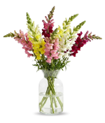 Este magnífico ramo ilumina cualquier habitación con su vibrante gama de colores. Incluye 8 bocas de dragón de colores surtidos con verdes frescos.