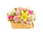 Piensa en todos los momentos felices y amorosos que has compartido con mamá. ¡Aquí tienes una forma genial de expresar esos sentimientos! Lirios asiáticos, rosas, alstroemerias, claveles, solidago, pompones y margaritas se combinan a la perfección en una cesta de madera partida con asa y un toque de encanto.