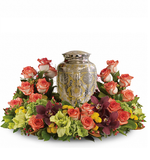 Un jardín rico y sutilmente coloreado expresa condolencias con gran delicadeza, en un delicado arreglo ovalado que honra y ensalza un preciado recuerdo. Urna no incluida.