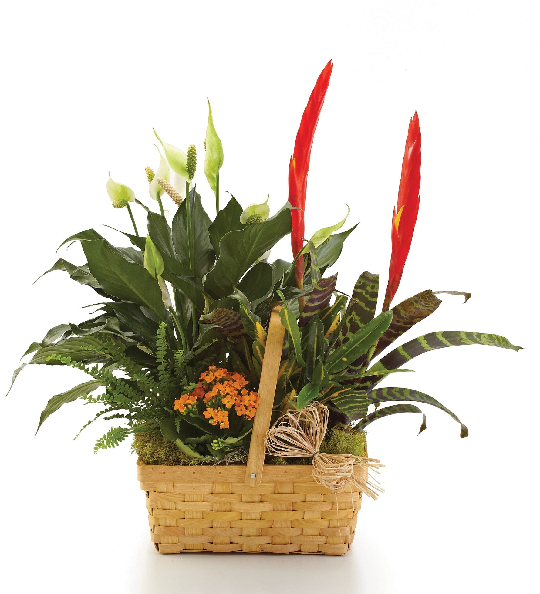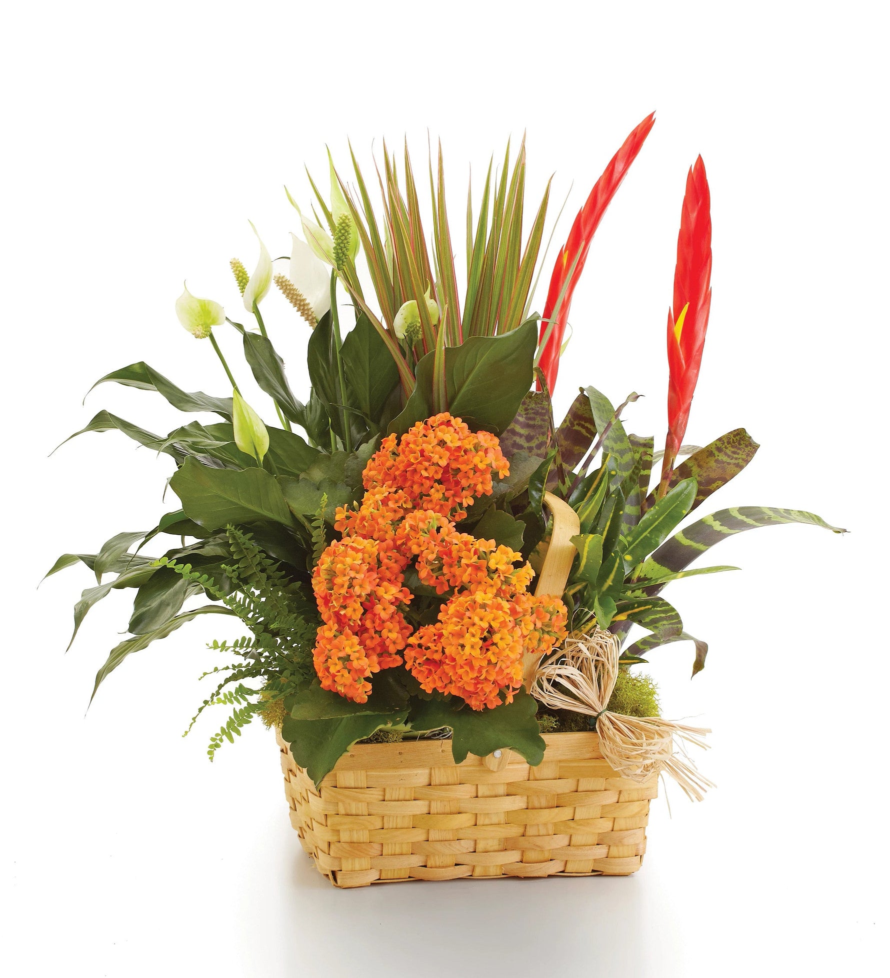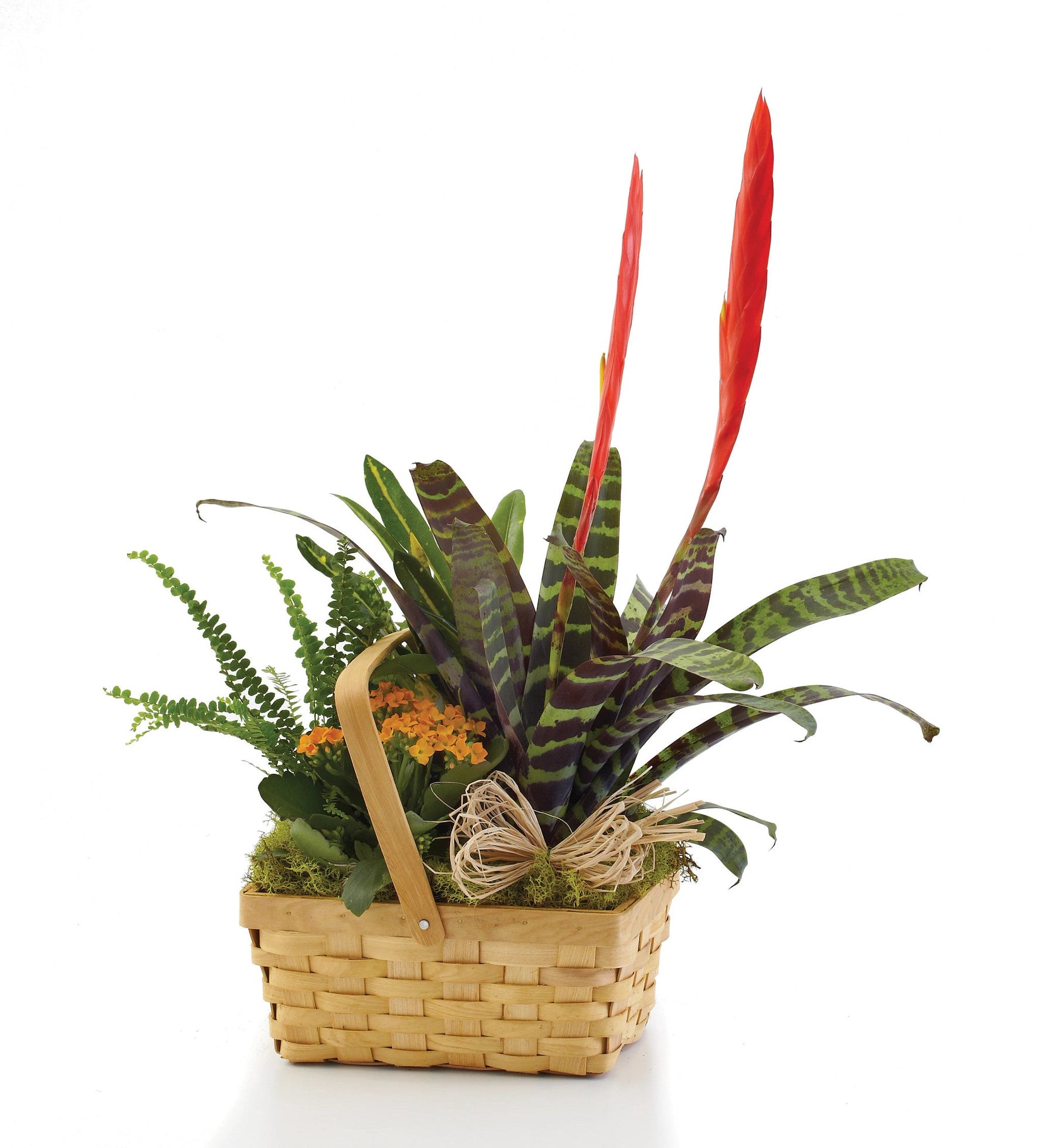 Regale un regalo elegante y hermoso que invita al aire libre y es fácil de cuidar. Nuestro floreciente jardín llega bellamente arreglado a mano en una alegre canasta de madera partida.