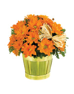 Precio unitario / porLa temporada de otoño se combina a la perfección con el feriado de Acción de Gracias, acentuado magníficamente por esta planta de crisantemo excepcionalmente impresionante con detalles en naranja en una maceta de virutas de madera de color naranja.