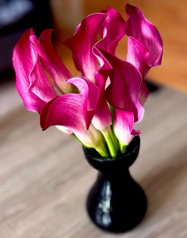 Resulta que hoy recibí un envío de Bloomex para el Día de la Madre. ¡Estaba haciendo un pedido en su página web cuando me llegó! Me encanta el ramo de calas. ¡Son preciosos!