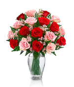 Prix unitaire / parCe magnifique bouquet aux nuances de rouge et de rose ravira sans aucun doute son destinataire. Il contient un mélange idéal de fleurs fraîches qui s'harmonisent à la perfection. Il comprend 9 roses roses et 9 roses rouges, présentées avec un joli feuillage frais.