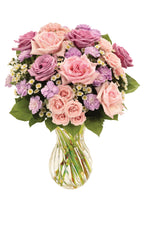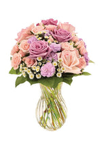 Prix unitaire / parL'amour peut s'exprimer de mille façons, et ce magnifique arrangement floral multicolore en est la parfaite illustration. Roses, œillets miniatures, roses branchues, fleurs de Monte Casino et salal sont savamment agencés dans un vase transparent aux volutes harmonieuses.